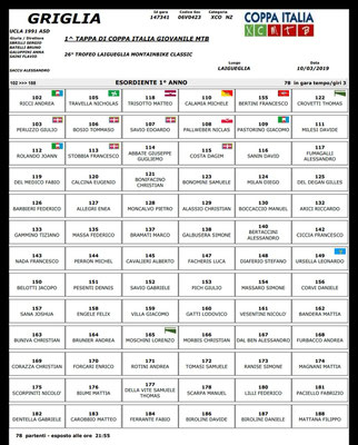 Ingresso in griglia ore 8.45 cat. Esordienti M 2° anno