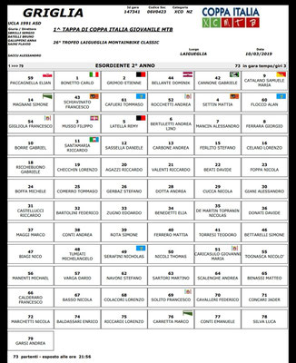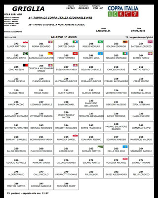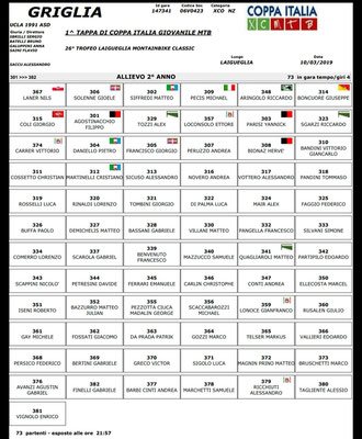 Ingresso in griglia ore 11.45 cat. Allievi M 2°anno